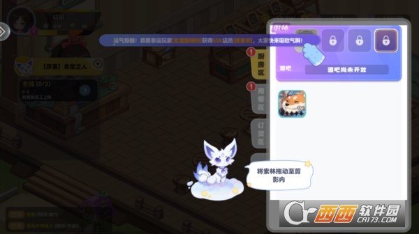 萌系治愈画风 + 趣味互动:全员萌物的角色设计,有兔耳少年、熊猫大厨等近百名个性店员,可戳戳店员肉嘟嘟的脸颊、和宠物在菜园打滚,顾客用餐会头顶爱心特效,每一帧画面都柔软治愈,消解疲惫。