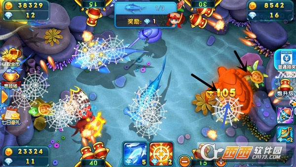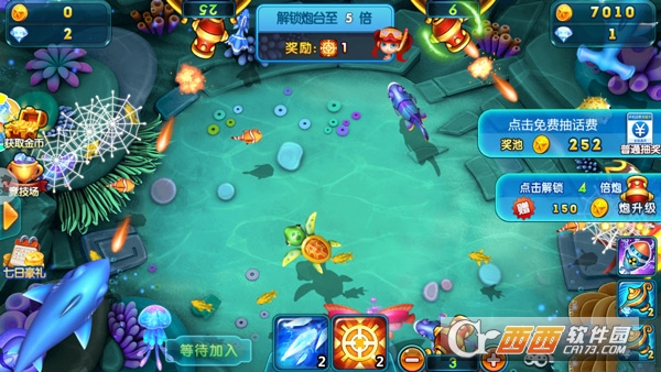 升级炮台能提高捕鱼的杀伤力,攻打大鱼和远处的鱼时必须要使用大炮,如果炮弹不足,是无法捕捉成功的,因此还需要升级炮弹的倍数,倍数越高,冲击力越大。升级炮台需要消耗一定的钻石,钻石如果不够可以在游戏中升级赢得钻石或者去商城购买。