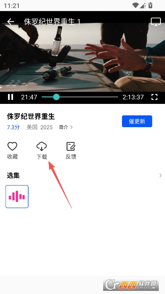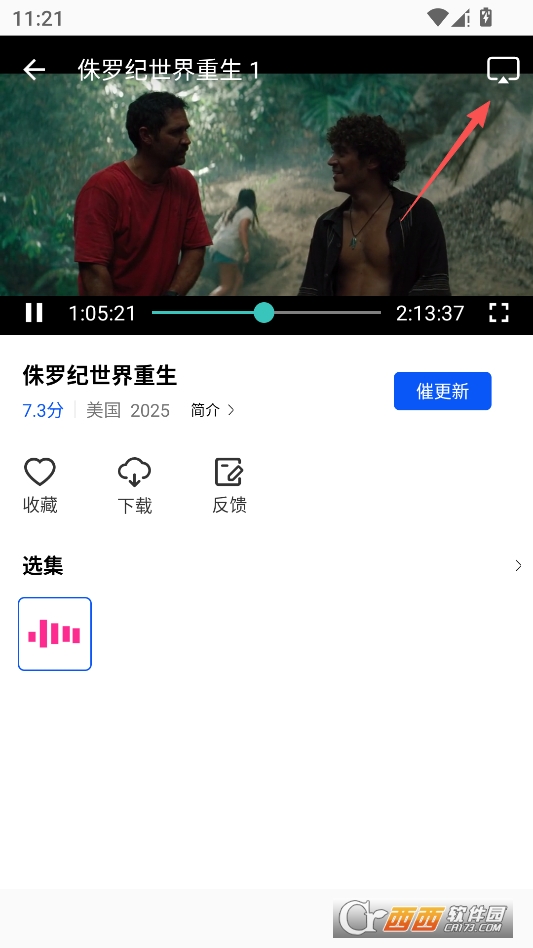 进入到资源播放界面,点击缓存按钮