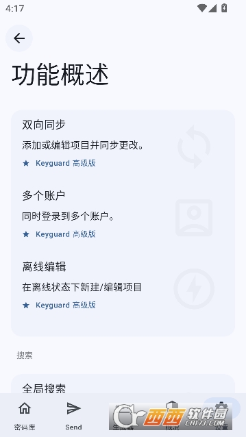 Keyguard密码管理器安卓中文版是一款专为安卓用户打造的开源管理工具,为用户提供专业高效的资产管理服务,能够设定独特的专属密码保护账户安全,还能将加密的密码库储存在账号云端,支持多账户管理与离线编辑,还能通过全局搜索与过滤器找到你的密码,内置随机符号生成器,账号概况分析,助力全方面账户安全。