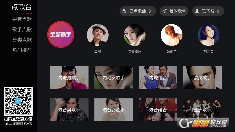 2、歌手点歌:按歌手名字浏览所有歌曲。