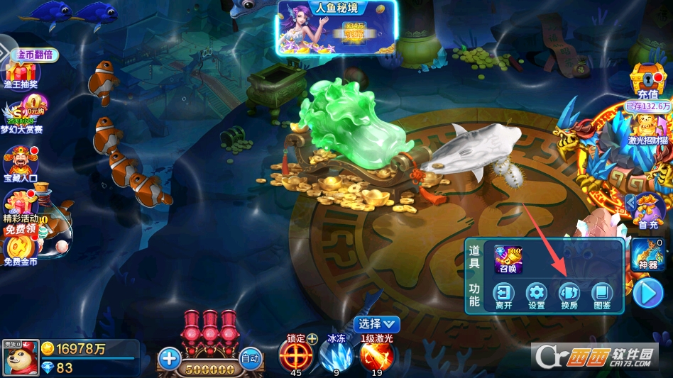 进入游戏渔场之后,点击右下角的按钮