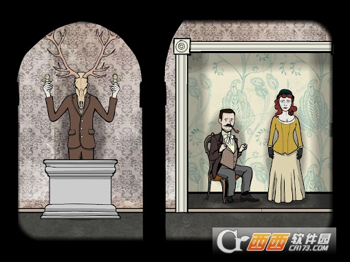 画风与氛围极具特色,采用复古铅笔手绘的哥特暗黑风格,搭配阴冷色调和沉浸式音效,每个关卡均有专属主题曲,营造出诡异悬疑的解谜氛围。独特的视觉风格让锈湖系列极具辨识度,贴合游戏的悬疑主题,沉浸式音效更能让玩家快速代入游戏场景。