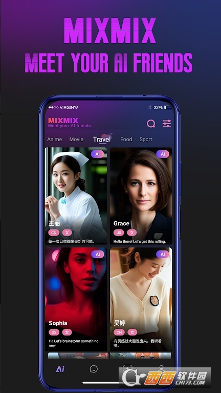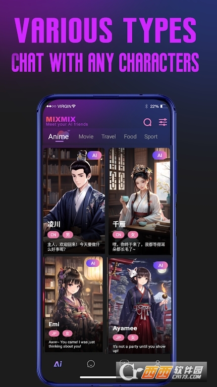 1、海量角色库:MixMix2026手机版拥有由全球用户创建的庞大角色库,能满足不同用户的多样需求,让你在交流中拥有丰富选择。