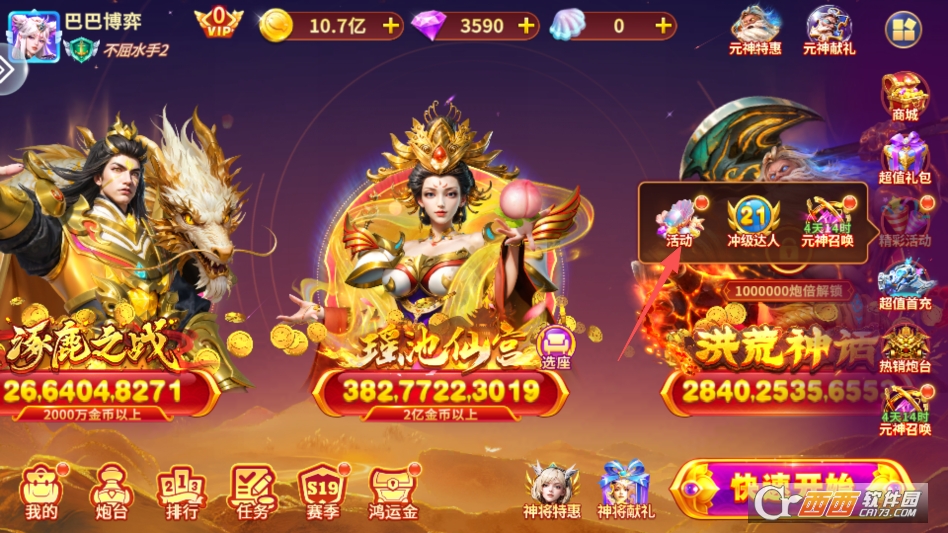 点击游戏主界面右侧的活动按钮进入活动专区