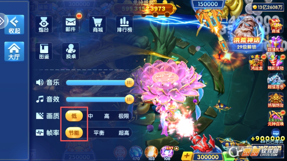 拥有多类渔场模式自由切换功能,不同渔场鱼群种类、密度、难度各不相同,让玩法更具策略性与趣味性。