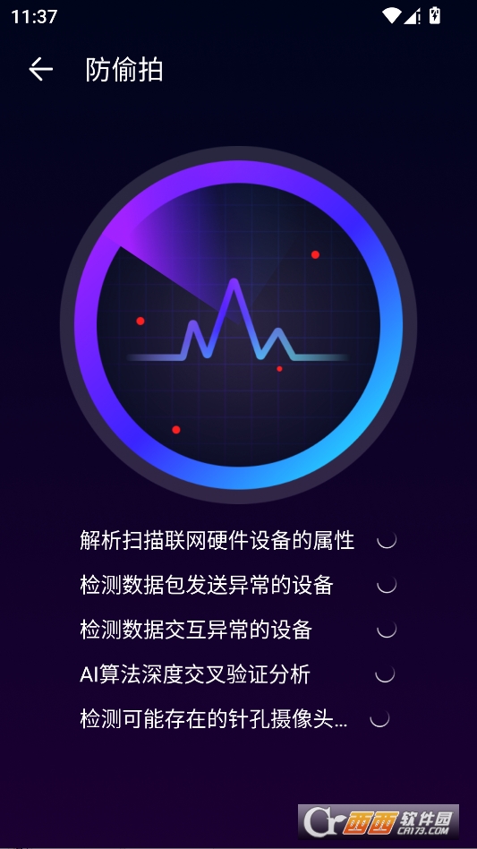 核心亮点为高精度隐藏摄像头检测,高效识别针孔、无线等可疑拍摄设备。