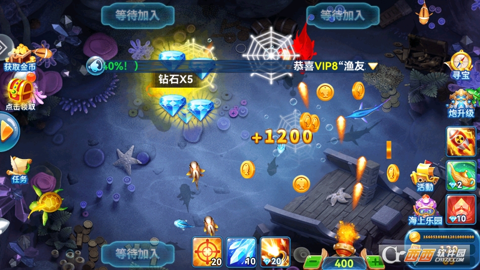 游戏内置丰富的日常任务、闯关任务,玩家完成任务即可领取海量金币、炮台升级材料、特殊道具等奖励;同时设置等级闯关、场景解锁等玩法,玩家提升等级、解锁新场景,可解锁更高级的炮台和更多珍稀鱼类,捕获高价值鱼类的概率大幅提升,让游戏更具成长性和趣味性,长期玩也不枯燥,同时定期更新活动和限时任务,保持游戏新鲜感。