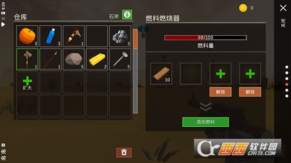 2、游戏中需探索废弃城镇、营地、洞穴等地点收集食物、材料和装备,为生存与建造提供资源。