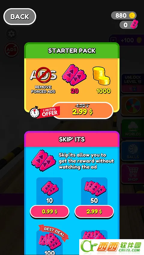 10、选择【SHOP】,可进行金币、卡牌等道具的购买,以上就是Going Balls球球酷跑游戏攻略了。