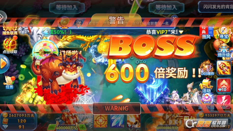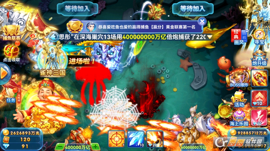 BOSS围捕模式,作为游戏的特色主打模式,定期刷新各类深海BOSS,BOSS分值超高,捕获后能获得大量金币、稀有道具和福利奖励,玩家可单人挑战,也能邀请好友组队围捕,合力击败BOSS,收获更多惊喜,兼具挑战性和趣味性。