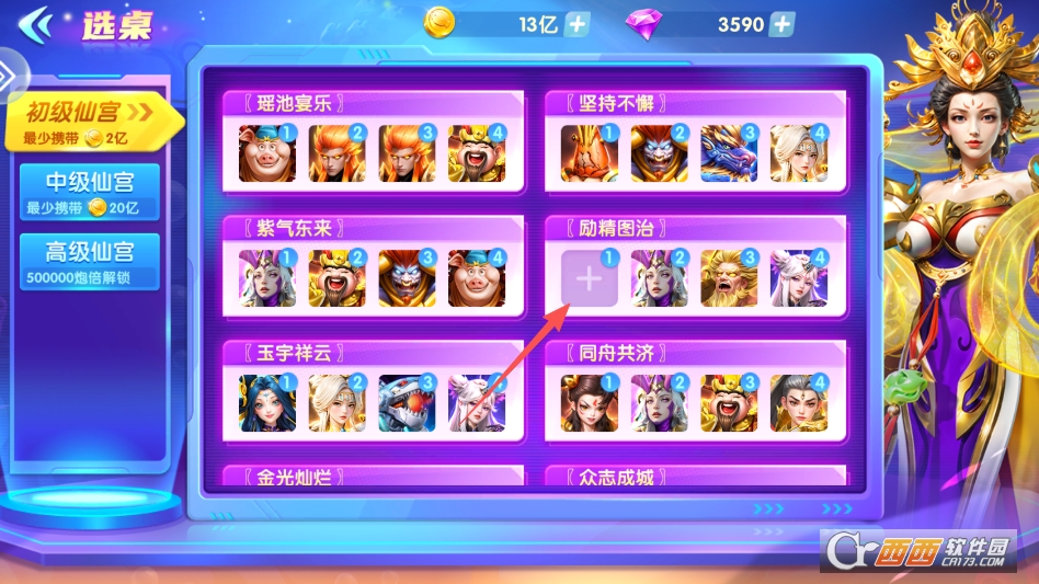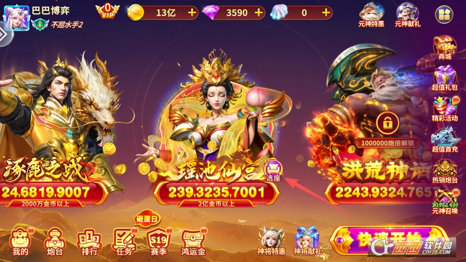 在选择渔场的界面找到高级渔场,点击选座按钮