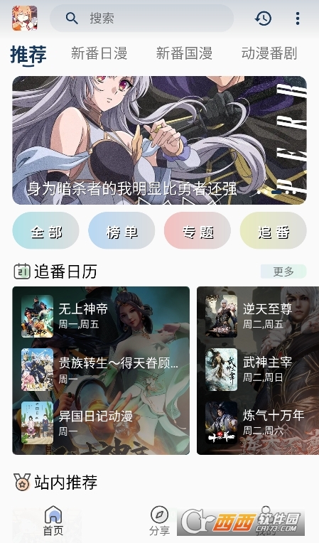 3、国漫日漫全收录,题材分类细致:同时覆盖国漫和日漫两大领域,满足不同口味的动漫爱好者。搞笑、科幻、热血、冒险、恋爱、治愈……数十种题材分类,精准定位你的喜好。