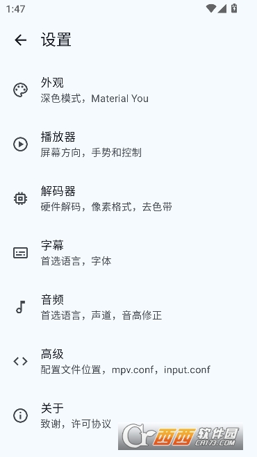 软件内置画中画、自定义手势、倍速播放、记忆进度等实用功能,可自由调节音量、亮度、播放进度,支持加载外部音轨与字幕,精准控制字幕延迟、比例、字体与样式,满足多样化观影需求。同时提供高级配置与脚本扩展功能,支持 mpv.conf 自定义设置,既能满足普通用户 “打开即用” 的简单操作,也能适配发烧友深度定制的使用习惯。