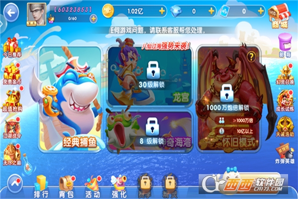 4、真人竞技+BOSS挑战,多元玩法:除了传统捕鱼,更有真人实时竞技场,与全服玩家同场比拼捕鱼技巧;定时世界BOSS挑战,全服合力围剿深海巨兽,根据伤害排名获得稀有奖励。