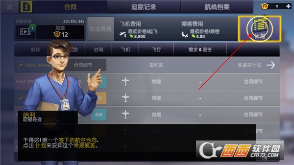 2、经营机场的第一步就是需要签订各种合同,玩家可以点击合同和航班公司签订合同。