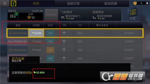 3、玩家签订合同之前合一看到和航空公司合作的预期收益。