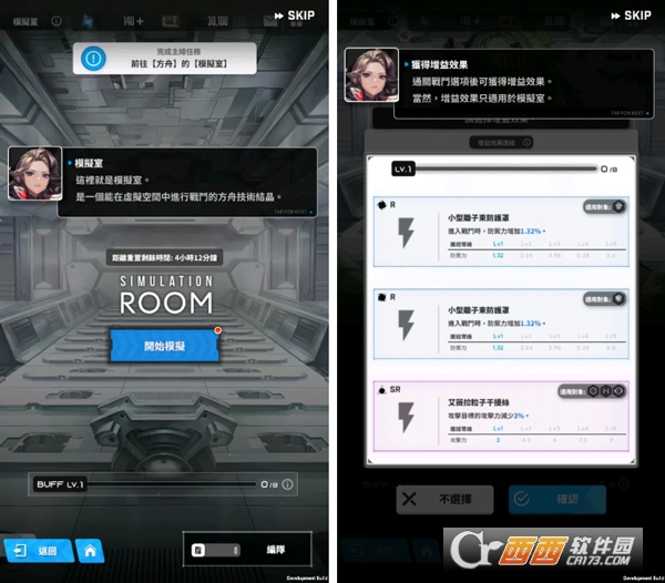 模拟室可以针对各种状况进行训练,途中能获得仅限此处可用的增益效果,可以更换组合取得最棒的战果。