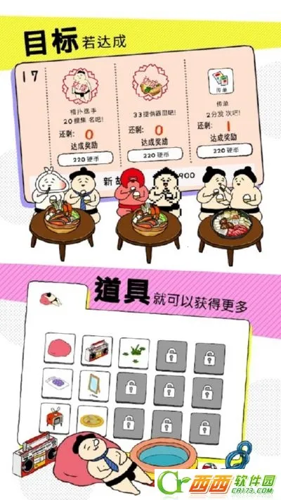4、游戏中有50多种相扑选手,能解锁周边物品,制作料理引诱选手光临。