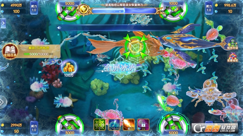 游戏由专业团队精心打磨,采用高清3D建模技术,构建出绚丽逼真的深海全景场景,从斑斓的珊瑚礁群到幽深的海底遗迹,每一处细节都经过精细雕琢,搭配灵动鲜活的鱼类动态与震撼的爆金特效,完美复刻线下街机捕鱼的沉浸式体验。