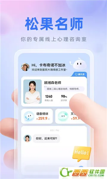 1、它是一对一泛心理情感倾诉咨询平台,汇聚多位知名心理导师和资深倾听者。