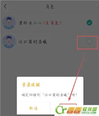 切换角色也很方便,进入我的页面,点击昵称右边箭头图标,进入角色页面后,在下方输入新角色名称点击添加,再点击确定,选择新角色就能完成切换,切换后原账号消息会以全新角色显示。