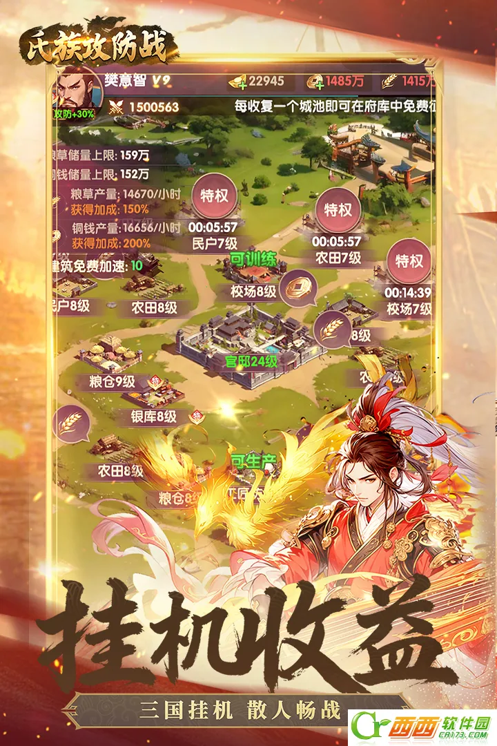 游戏以三国历史为蓝本,真实还原160余座城池版图,告别虚拟主城模式,让玩家仿若置身三国乱世。拥有多维策略体系,收录100余位武将、10余种兵种及20多种攻城器械,自由搭配决胜沙场。支持万人在线攻城,万人同屏激战,重现经典狼烟战场的宏大对抗,感受热血沸腾的战斗。玩家扮演一方诸侯,开启招兵买马攻城略地的诸侯成长之路,亲历史诗级战役的完整霸业。