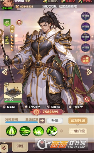 人物评价:10资质的马超,后期发展空间大,且是战车类的先锋,战车在攻城的时候很好用,且不容易战死,自身属性过硬,适合所有玩家使用和培养。前期获取路径容易,也是最好用的高战之一。