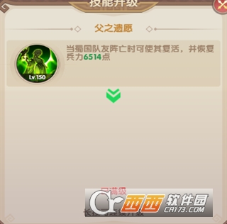 被动:攻击时有一定几率对提升附近友军攻击点数,持续6秒。当蜀国队友灭亡时,可使其复活并回复一定额的兵力。战斗时提升自身一定额的谋略点,直至战斗结束。