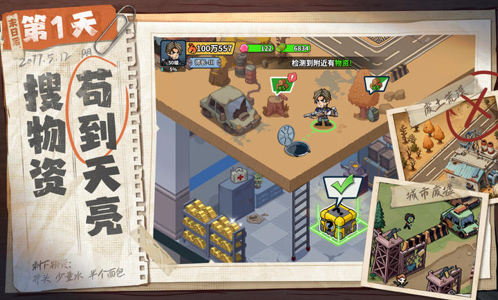 1、通过滑动手指操作幸存者移动,优先前往安全区域救援队友、搜集物资。