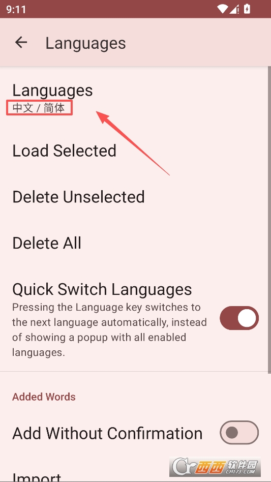 返回点击设置默认输入法