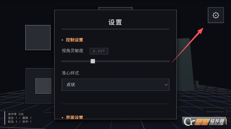 右上角设置菜单还可以调整瞄准灵敏度