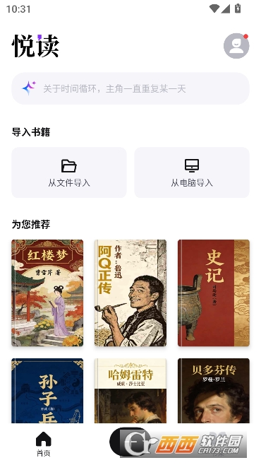 悦读Readify官方最新版是一款超好用的阅读工具软件,搭载先进的AI辅助阅读功能,海量书源一键直达,内置多种类型的文学小说,艺术著作,点击即看无需任何会员与付费,并且支持边读边听解放双眼。可以导入本地书籍与小说在线观看,支持AI搜书,文件导入,电脑导入,输入书名/作者/描述关键词即可快速直达,满足不同用户的阅读需求。