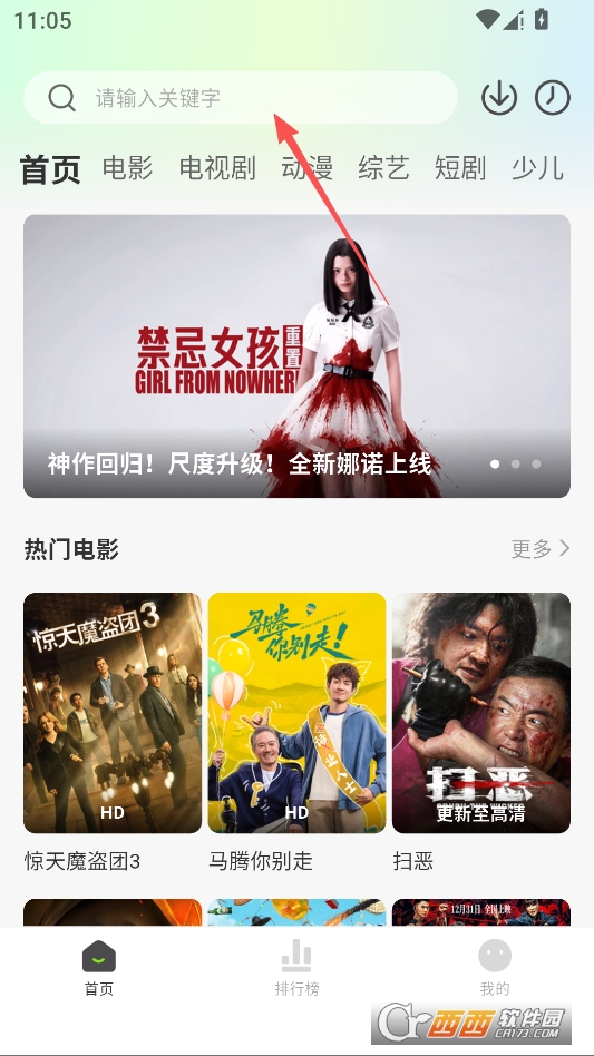 进入软件主页,点击搜索框搜索想看的资源