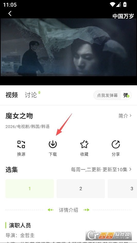 在播放界面点击下载按钮