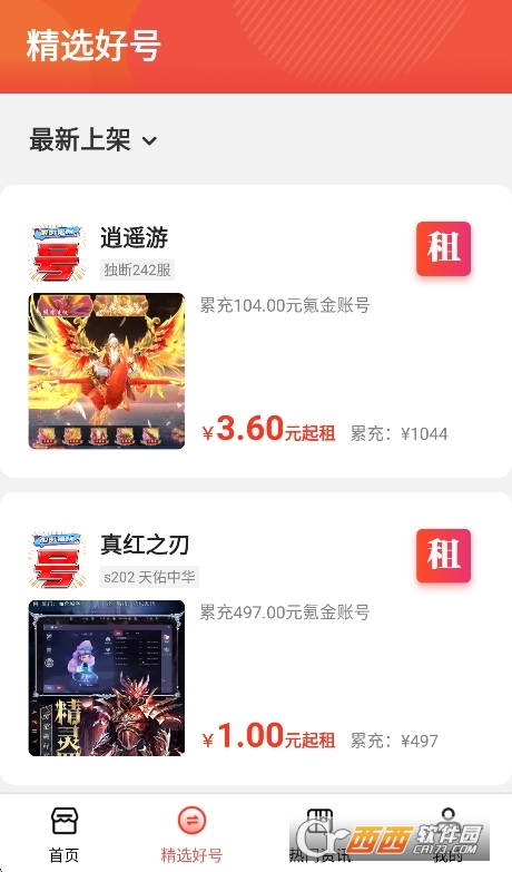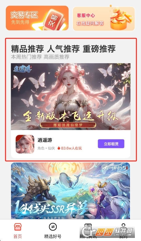 1、热门游戏专区:首页展示当前热门的游戏入口,点击即可进入对应游戏的账号列表,方便快速浏览。