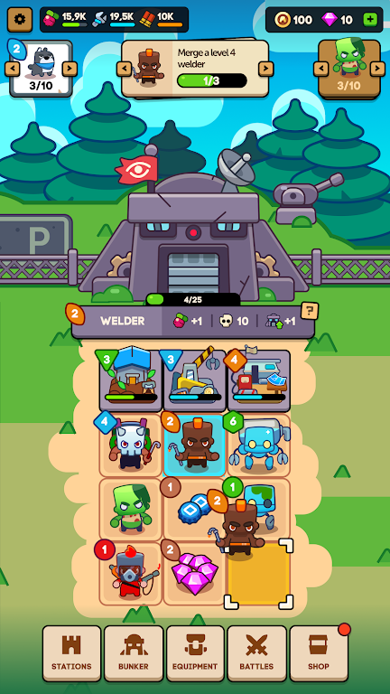 2.合成系统是提升战斗力和生产效率的唯一途径。玩家可以将相同等级的英雄角色武器装备和功能模块合成,解锁更强大的单位和工具。