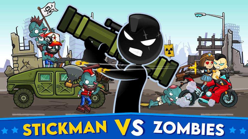 1、扮演火柴人角色,在僵尸末日中生存,控制射击击溃成群危险僵尸。