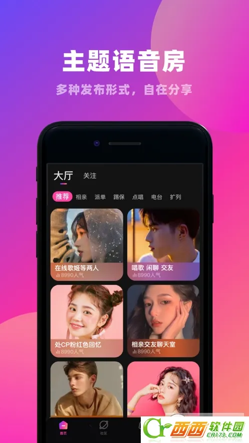 1、专为年轻小伙伴打造的社交恋爱互动平台,集聚各类小哥哥小姐姐。
