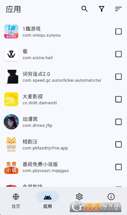 2、在 Hail 主界面浏览已安装的应用列表,勾选需要冻结、隐藏或停用的应用。建议避开系统核心应用(如电话、短信、设置),以免影响正常使用。