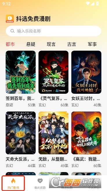 抖选免费漫剧app最新版是一款专为漫剧爱好者打造的免费播放平台,汇集海量漫剧资源,涵盖都市、悬疑、现言、军事、热血、历史等多种题材标签分类,每天都会上新热门内容,并且提供多样化的剧单合集,输入关键词即可快速搜索直达,点击即播无需任何会员付费,还能随时切换倍速与选集,满足不同用户的追剧需求。