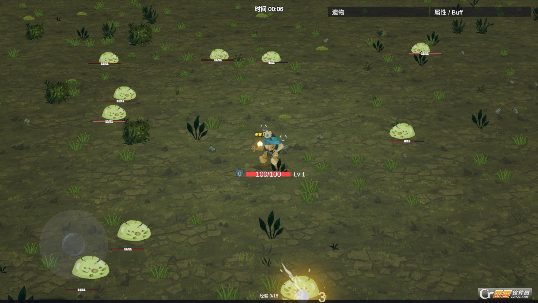 2、正式开始后左边控制角色的移动,角色会自动攻击出现的怪物。