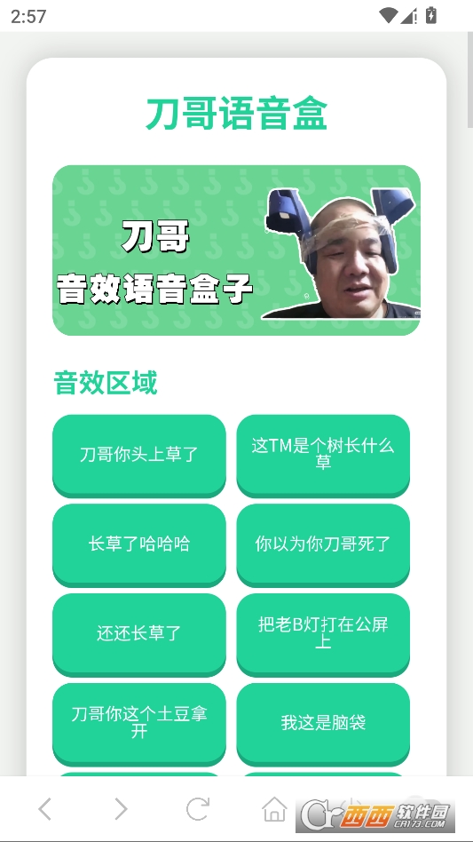 刀哥语音盒是一款轻量化、易上手的安卓语音工具。 安装包体积小,占用内存少,运行流畅不卡顿。 无需登录注册,下载打开就能直接使用。 适配大部分安卓手机,低配机型也能稳定运行。 软件内所有语音素材均为刀哥经典名场面台词。 分类清晰,点击即可播放,无复杂操作。 整体无多余广告,使用体验干净纯粹。 适合喜欢抽象文化、爱玩梗、爱整活的用户日常使用。