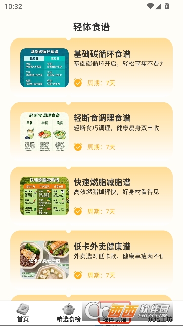 低卡 / 轻体内容专属库:内置专业低 GI 食材库与 7 天燃脂、轻断食、低卡外卖等专属食谱专区,分类清晰细致,精准匹配各类健康饮食需求,无需费心筛选即可找到适合自己的餐食方案。