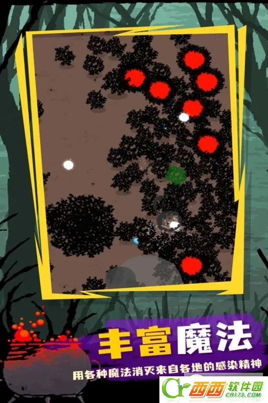3. 长期魔法战争致能量残留,腐蚀自然界,精灵成恶鬼力量扩散载体。玩家要面对恶鬼围堵,清除魔化生物。