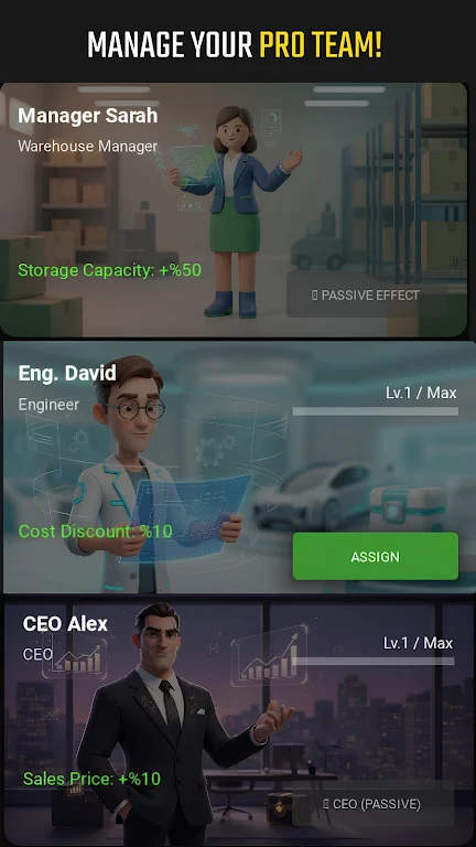 玩家能从初创小厂起步,逐步发展成工业巨头。在游戏初期亲手设计组装汽车,学习操作,管理资源和员工,随着收入增加解锁先进设备与系统,扩张厂房规模,提升竞争力,扩大市场份额。