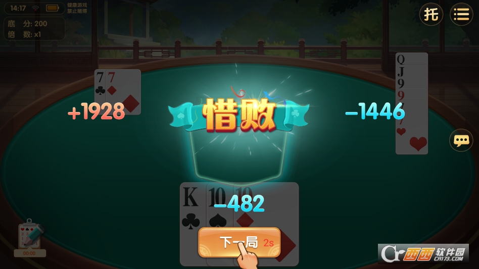 3. 癞子场模式:创新趣味模式,在经典玩法基础上加入“癞子牌”设定,癞子牌可替代任意牌型(除王外),大幅提升牌型组合的灵活性与随机性,增加了牌局的变数与乐趣。该模式更考验玩家的应变能力与牌型搭配技巧,适合追求新鲜体验、喜欢灵活博弈的玩家,胜利奖励比经典场更丰厚。