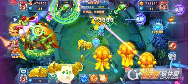 当我们打大boss的时候要注意了,一定要抢夺先机,提前将所有道具全开,并且炮弹倍数一定要开到最大,这样捕捉到boss的时候能够获取到非常之多的金币奖励。