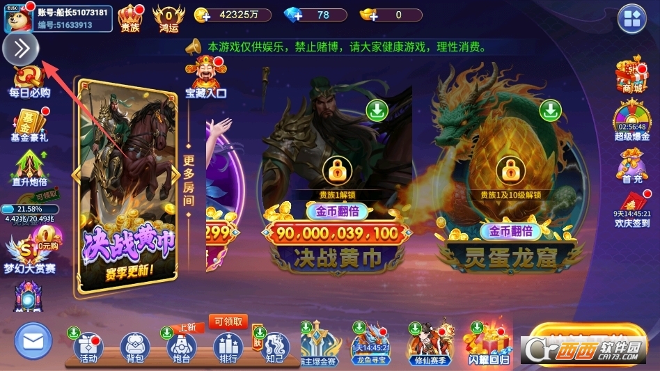 炮台选择与倍率适配技巧游戏拥有普通炮、穿透炮、速射炮、散射炮等多种炮台,且支持最高9999倍升级,不同炮台适配不同场景。新手前期优先用低倍率普通炮,捕捉近处小鱼积累金币,避免盲目开高炮浪费金币;遇到鱼群密集时,切换散射炮可同时攻击多条鱼,提升收益;捕捉远处大鱼或穿透鱼群时,选用穿透炮效果更佳;BOSS出现时,立即切换高倍率炮,集中火力攻击,提高捕获成功率。
