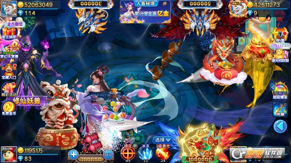 2. 珍稀鱼类全覆盖,捕获乐趣十足:汇聚各类珍稀鱼类,从常见的小型鱼类到罕见的深海巨物、神话级鱼类,种类繁多、造型各异,每一种鱼类都有独特的外观与分值,捕获难度与奖励成正比,捕捉珍稀大鱼时的成就感与刺激感双重拉满,让每一次开炮都充满惊喜。